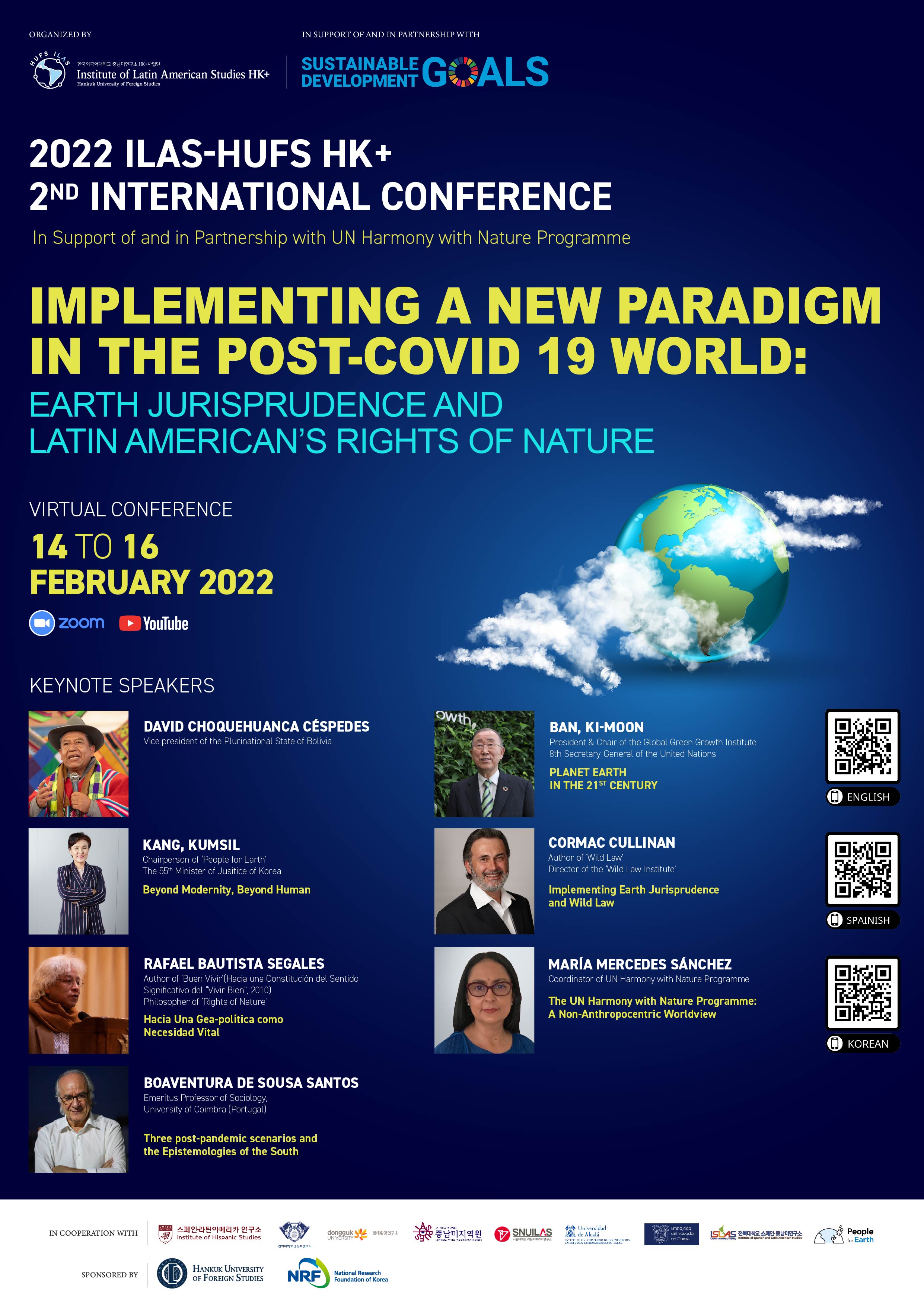 이번 학술대회는 유엔 지속가능개발목표(SDGs) 산하 공식프로그램인 하모니위드네이처(Harmony with Nature)의 공식 지원과 한국외국어대학교한국연구재단의 후원으로 개최된다또한 스페인 알칼라대학교 라틴아메리카연구소(IELAT), 주한 에콰도르 대사관지구와 사람경희대 중남미연구소고려대 스페인·라틴아메리카연구소동국대 생태환경연구소부산외대 중남미지역원서울대 라틴아메리카연구소전북대 중남미연구소가 협력기관으로 참여한다.