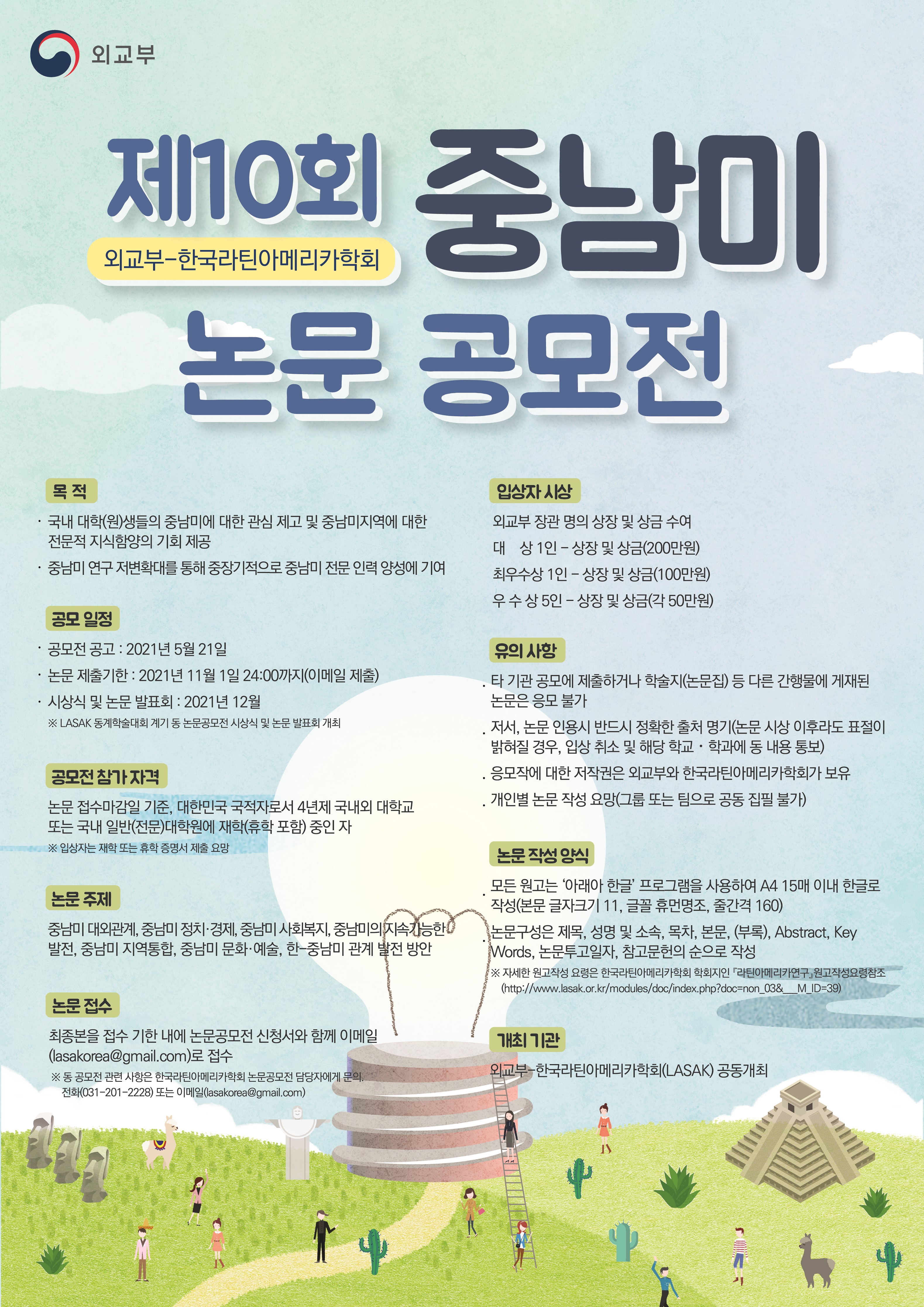 제10회 외교부-한국라틴아메리카학회(LASAK) 중남미 논문 공모전 공고
