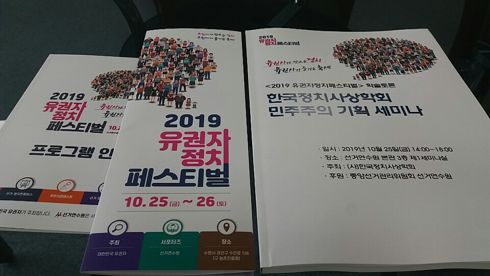 우리 사상학회는 2019년 선거연수원이 지원하는 선거페스티벌 학술세미나에 참여하였습니다. 한국사회와 민주주의 문제에 대한 사상적 개입의 장을 넓히고자 한국 민주주의에 대한 철학적 정치사상사적 접근을 주제로 모두 6편의 논문을 발표하고 토론하는 뜻깊은 자리를 가졌습니다.