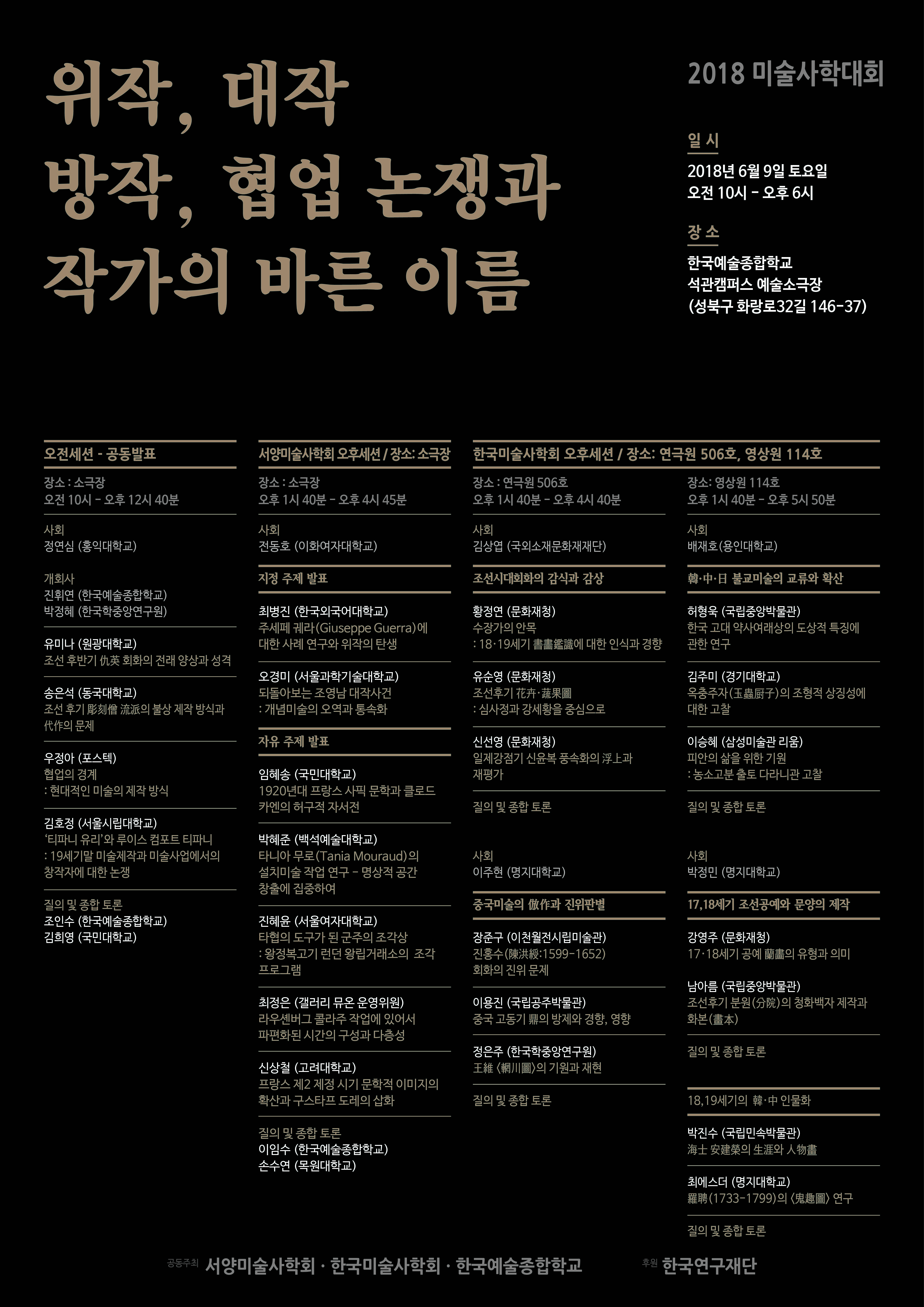주최 : 서양미술사학회 , 한국미술사학회, 한국예술종합학교 미술이론과