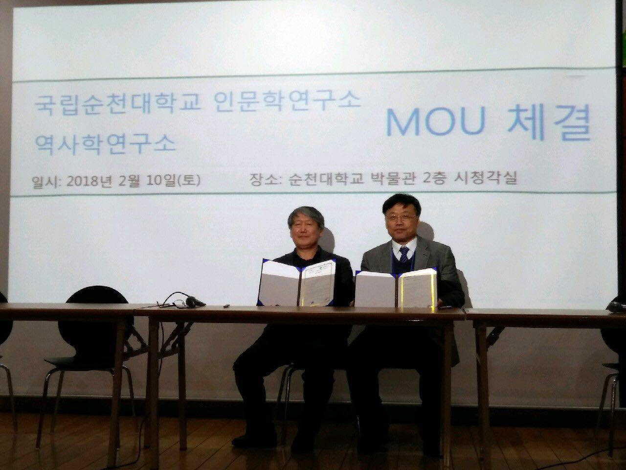 지난 2월 10일 역사학연구소가 순천대 인문학연구소와 MOU를 체결하였습니다.