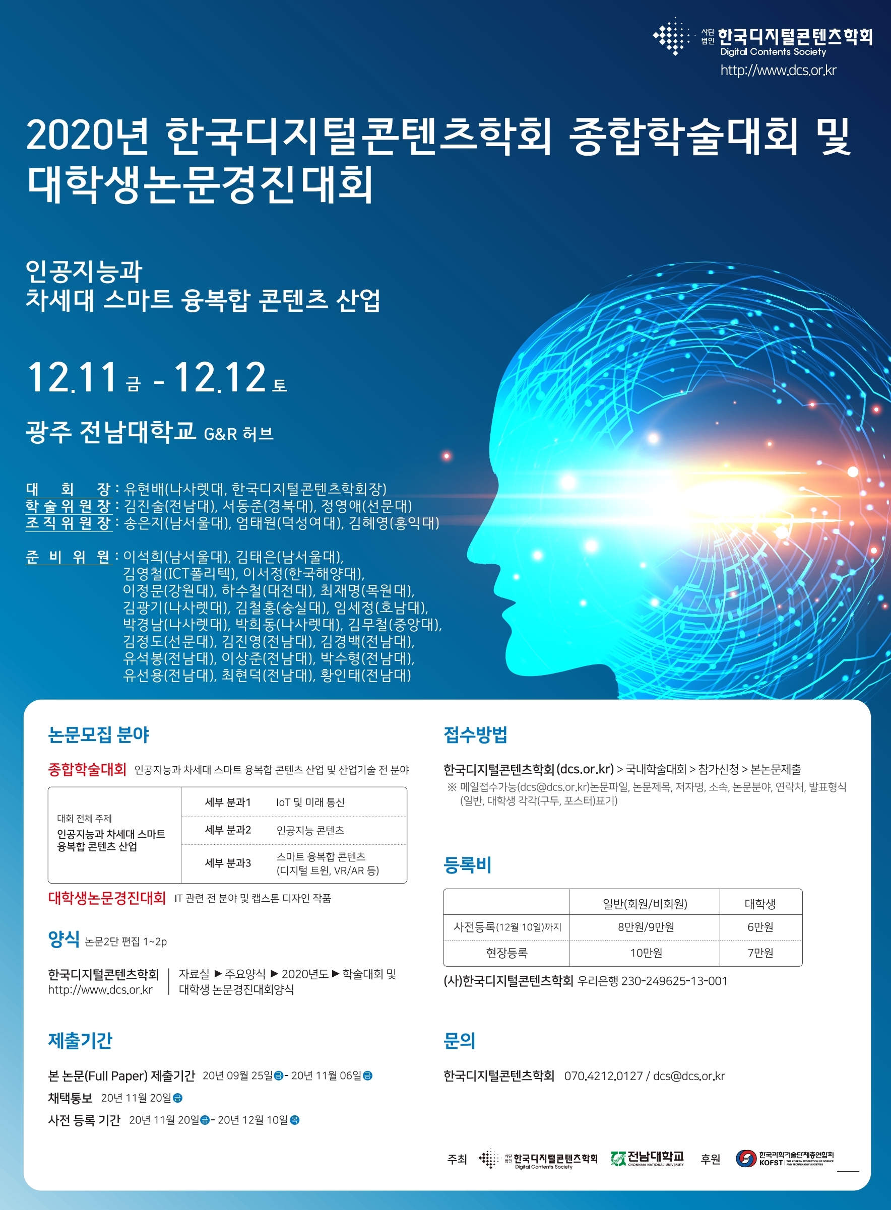 - 대회 전체 주제 : 인공지능과 차세대 스마트 융복합 콘텐츠 산업