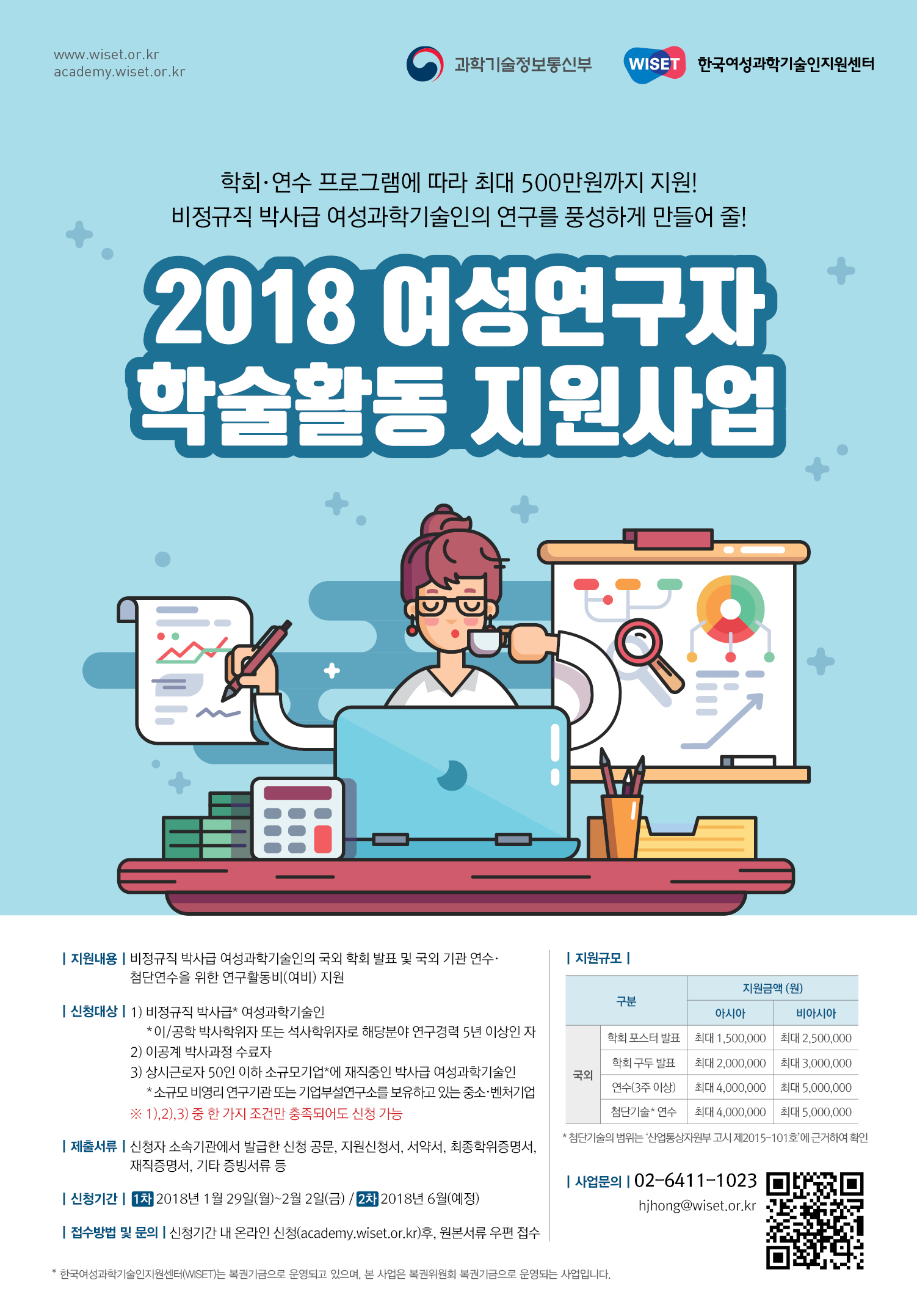 [WISET_여성연구자 학술활동 지원사업] 학회 참여 및 연수 활동 지원 최대 500만원 지원, 많은 관심 부탁드립니다
