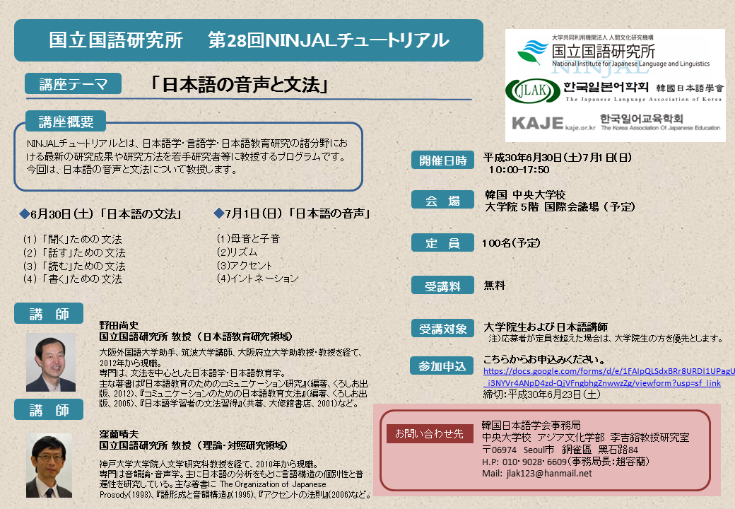 NINJAL 강습회는 일본어학연구, 언어학연구, 일본어교육연구 분야의 최신
