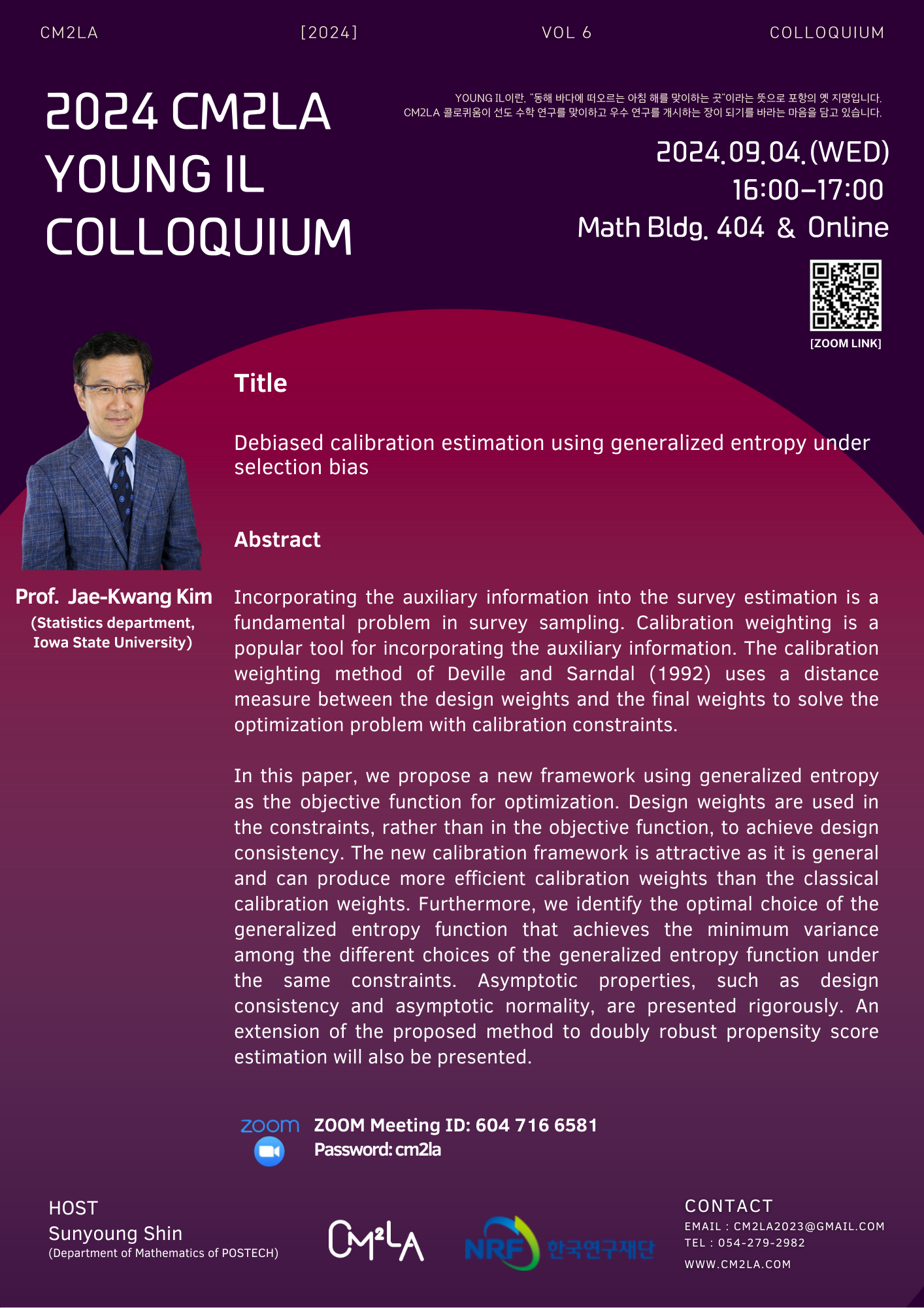- 장소: 포항공과대학교 수리과학관 404호 & Online(ZOOM)