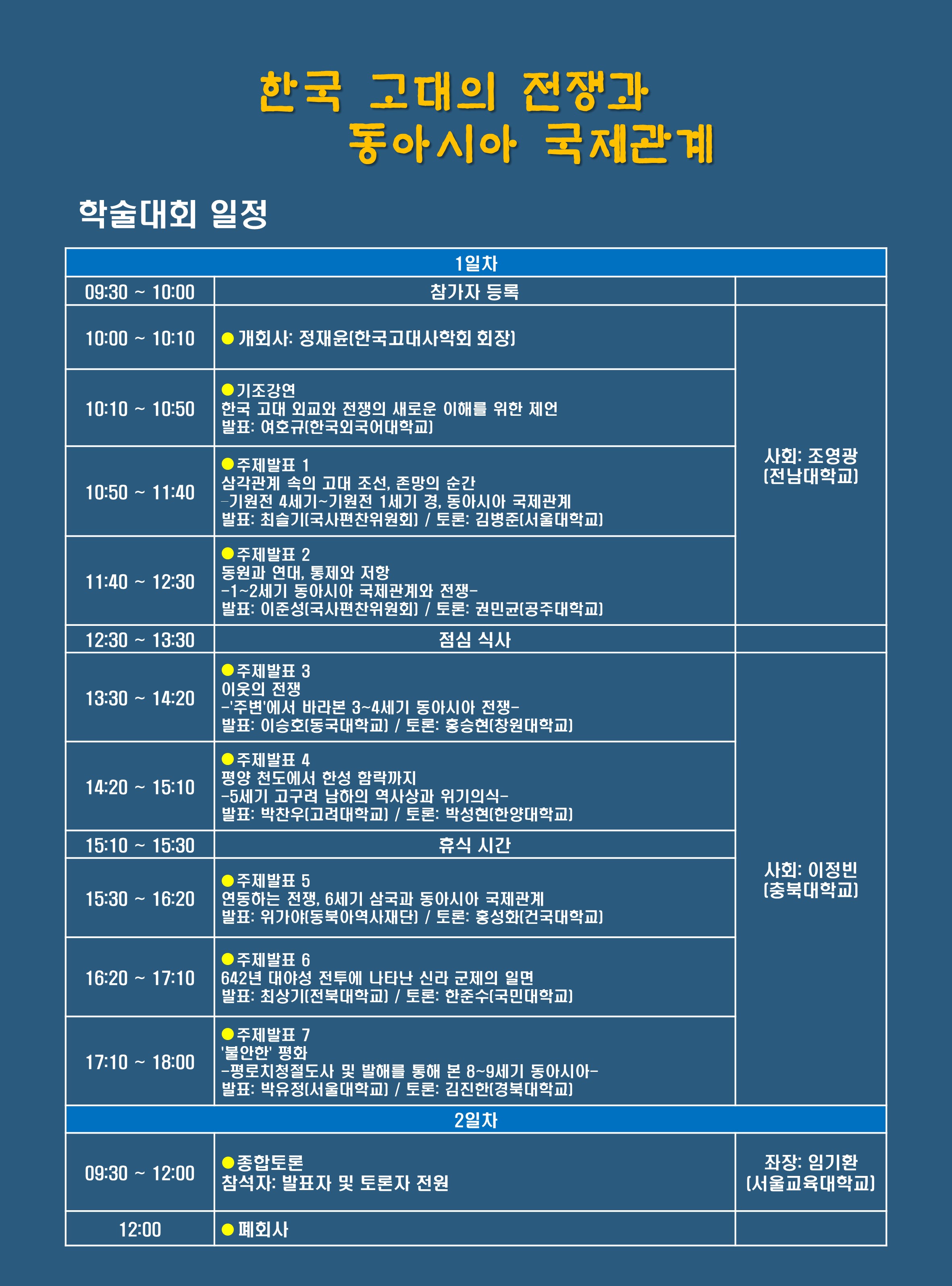 주제 : 한국 고대의 전쟁과 동아시아 국제관계