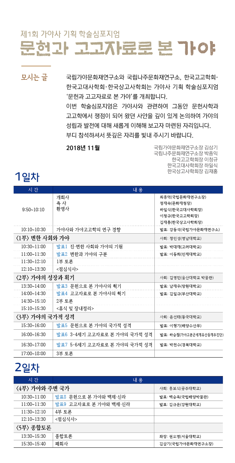 제162회 정기발표회-문헌과 고고자료로 본 가야(2018.11.21-22.)