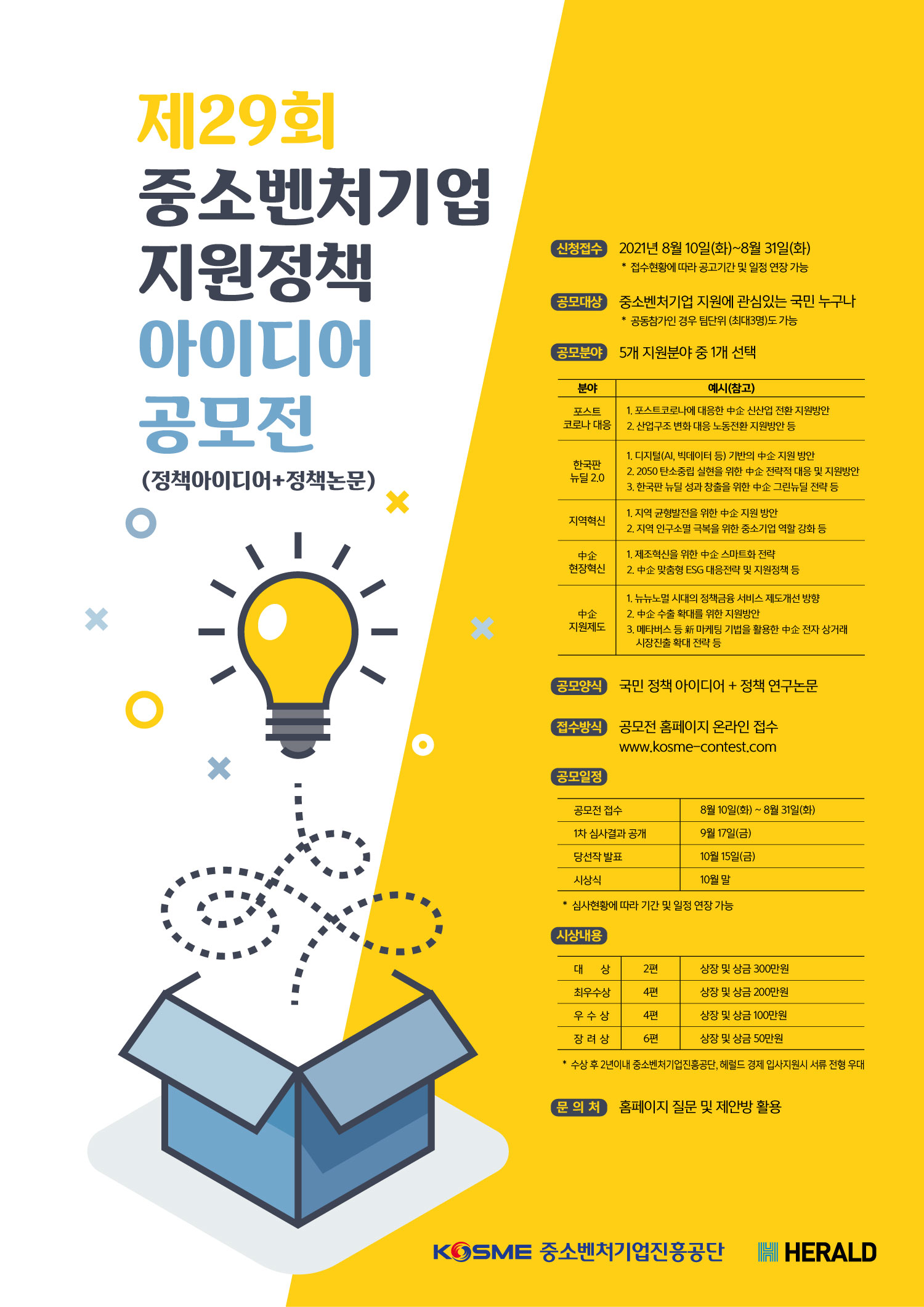 □ 공모내용 : 중소벤처기업 지원정책 아이디어 공모전