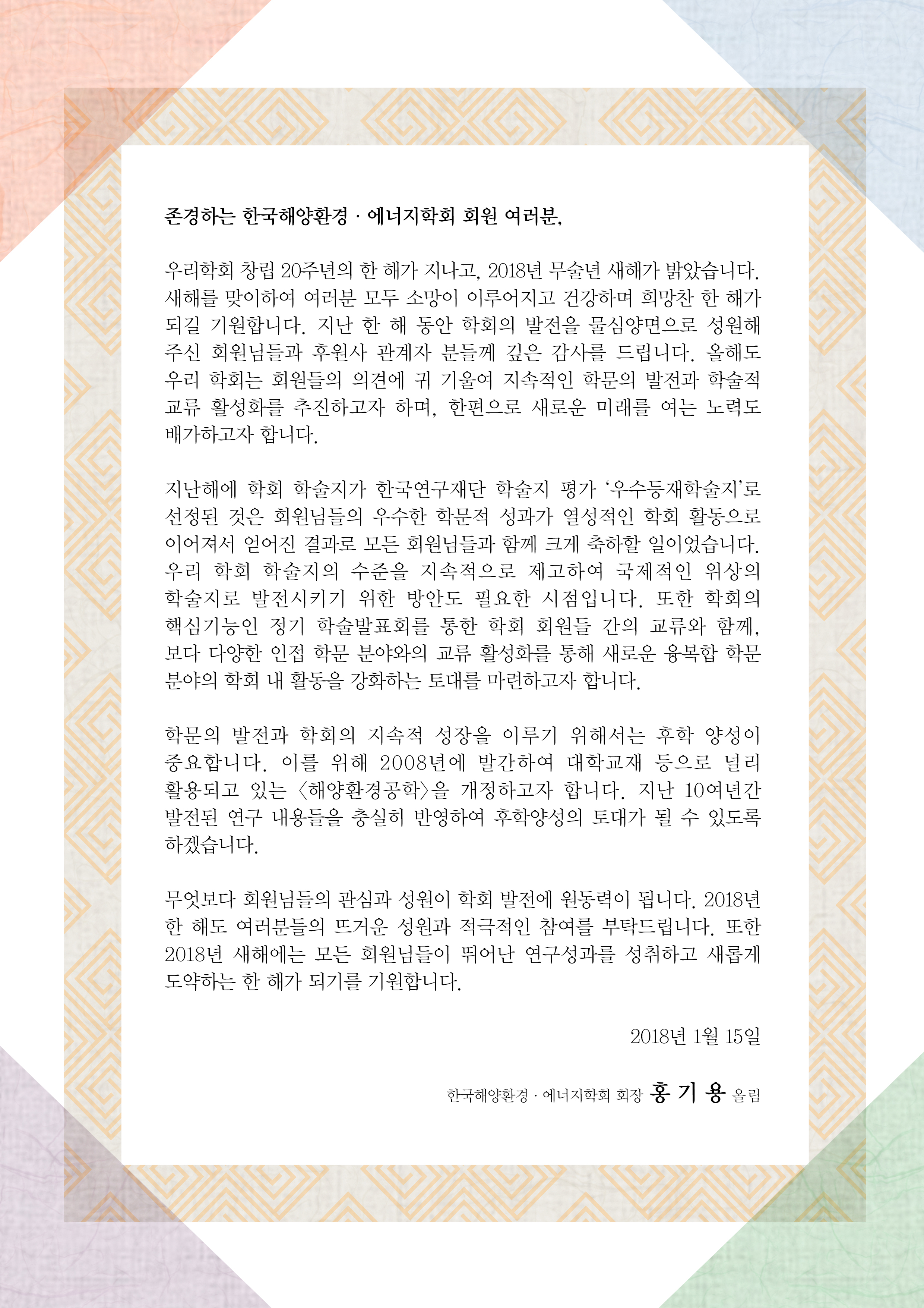 학회장 신년 인사말