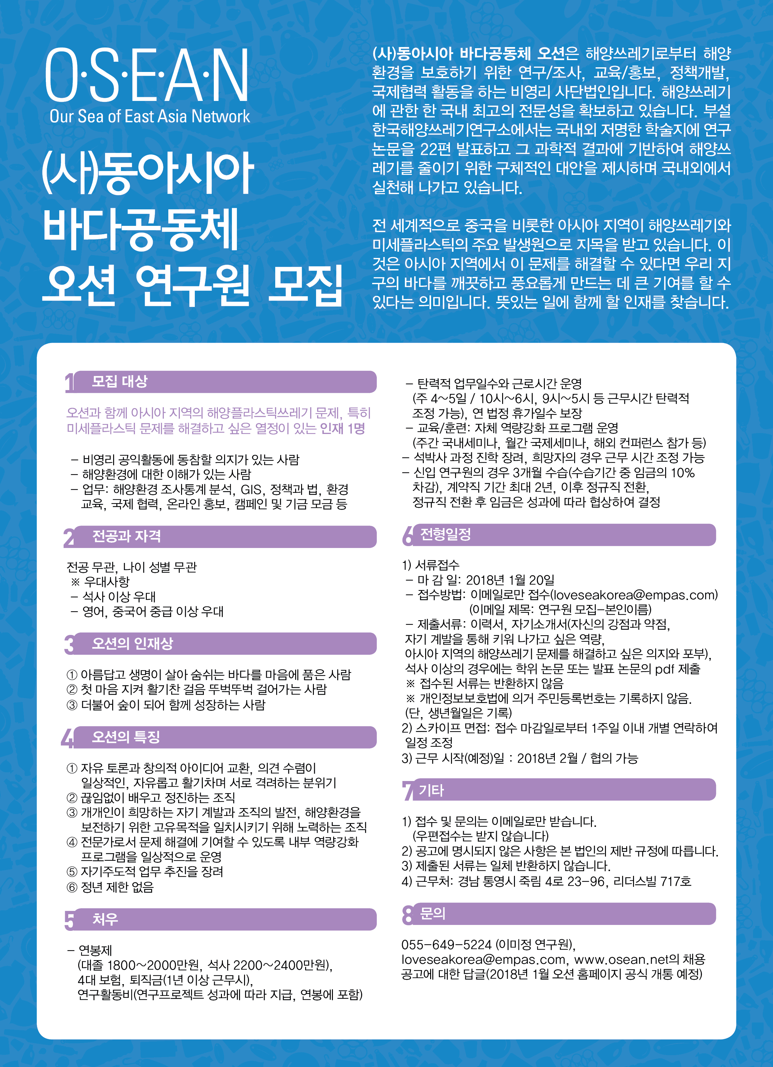 동아시아 바다공동체 오션 연구원 채용 공고 안내입니다.
