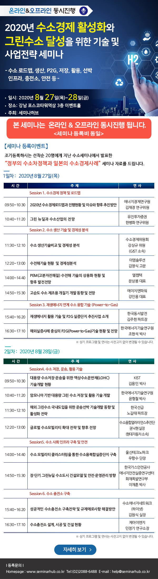 · 행사명 : 2020년 수소경제 활성화와 그린수소 달성을 위한 기술 및 사업전략 세미나