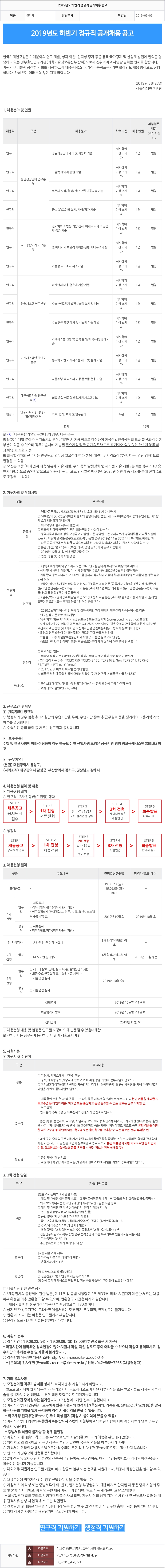 [한국기계연구원] 2019년도 하반기 정규직 공개채용