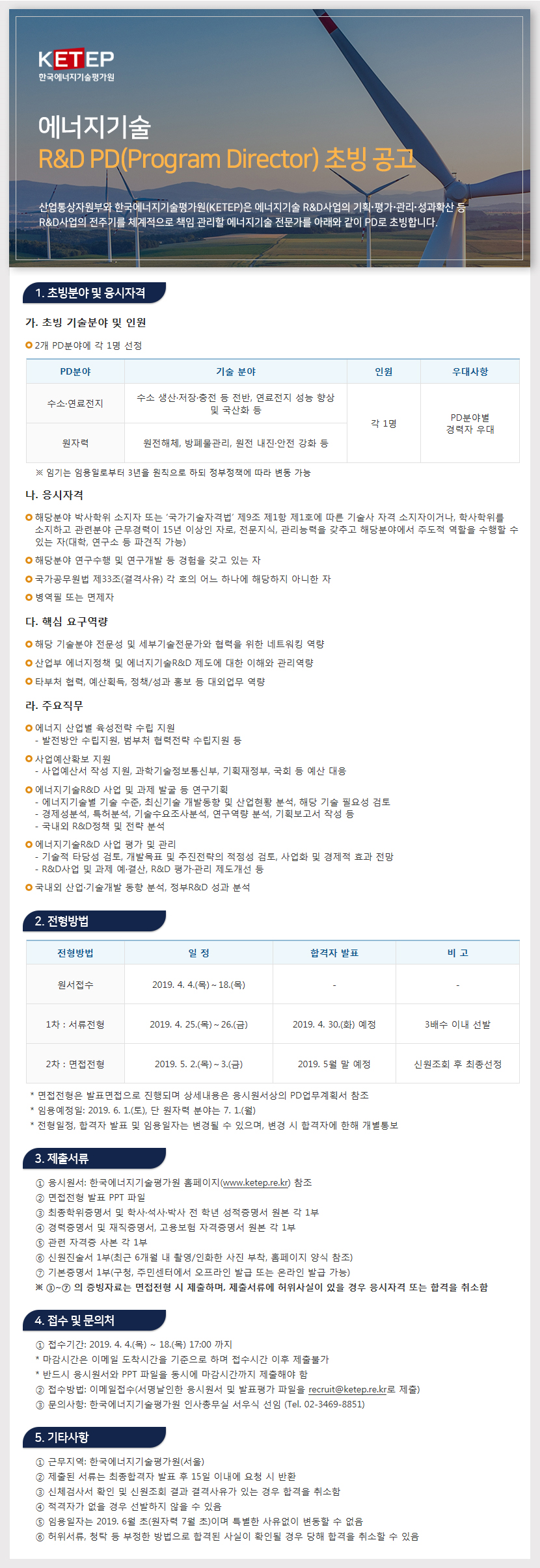 [한국에너지기술평가원] 한국에너지기술평가원 에너지R&D PD 초빙 공고 안내
