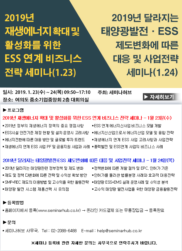 [세미나허브] 2019년 태양광발전사업/재생에너지와 ESS 연계 세미나
